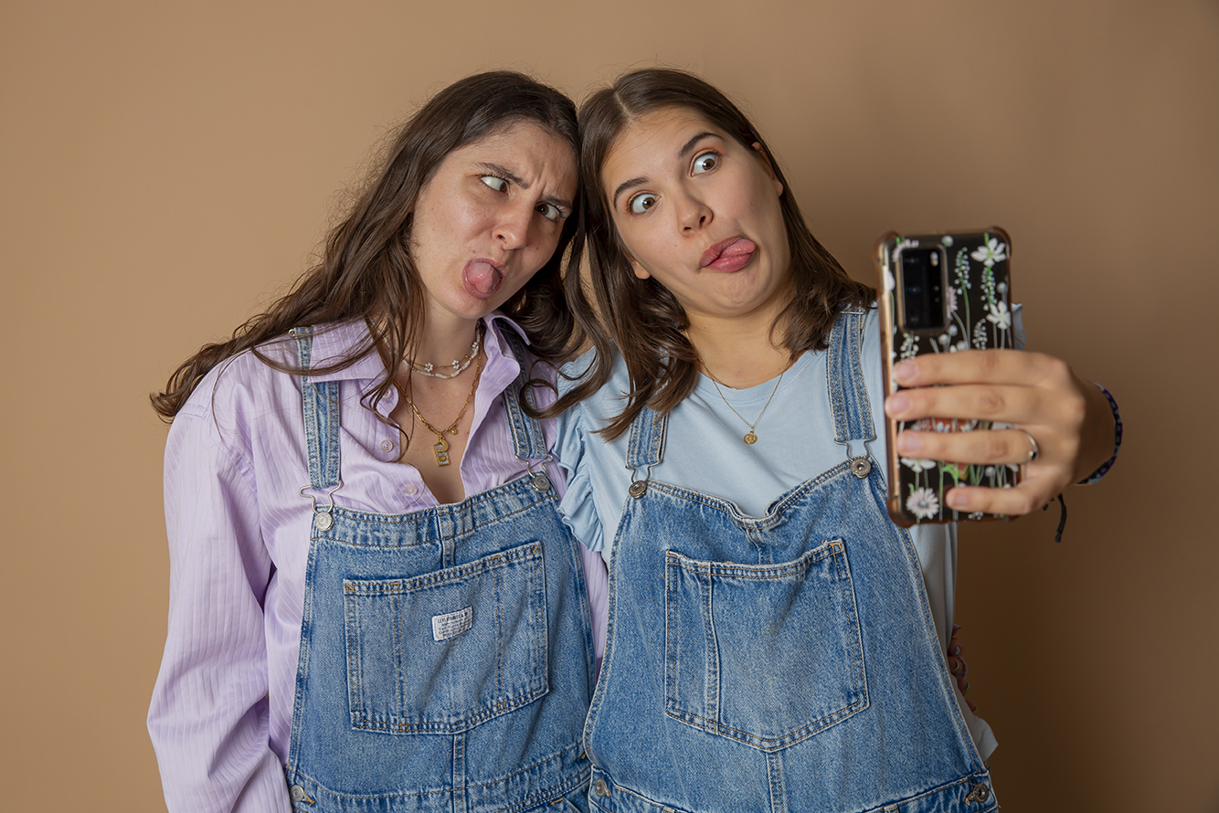 Séance photos entre amies, sur fond marron, chez Studios-photo2 à Villeneuve d’Ascq.