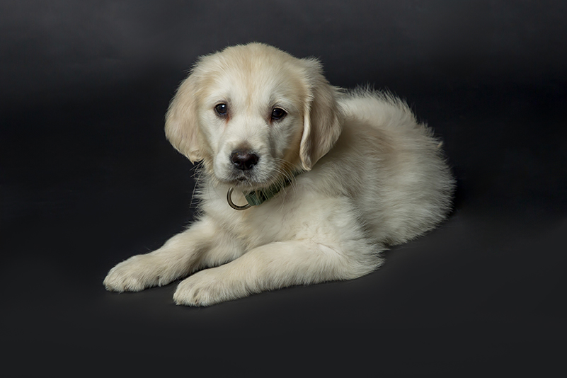 Séance photo d’un chien Beagle en famille et avec sa maîtresse, en studio sur fond noir.