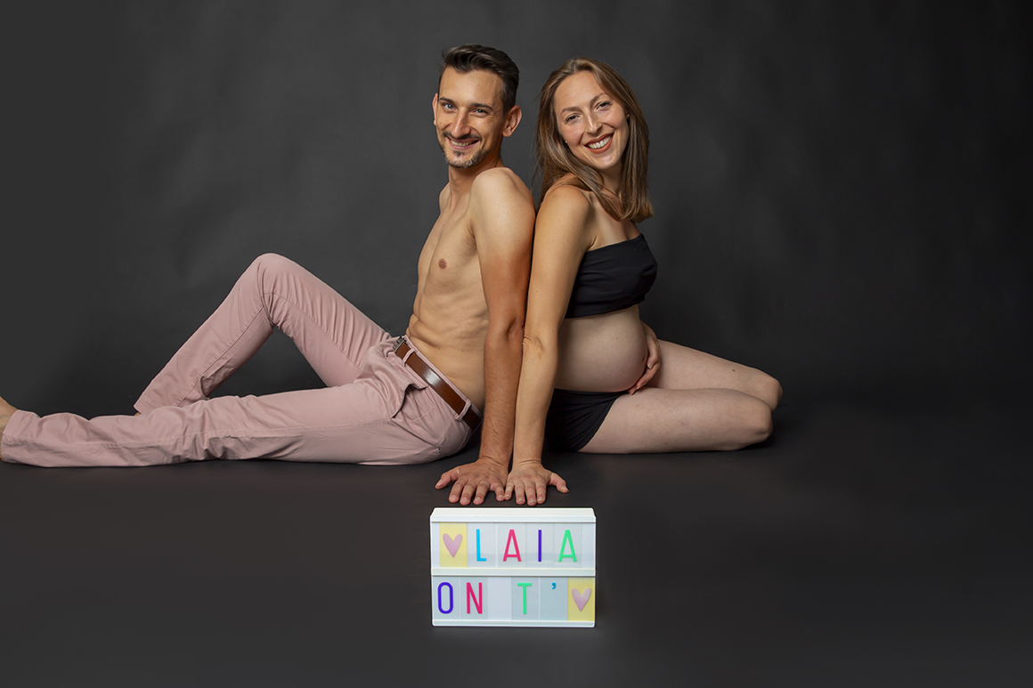 Séance photo de grossesse en famille. Les parents accompagnés de mamie et de leur fils de 2 ans, en studio à Villeneuve d’Ascq.